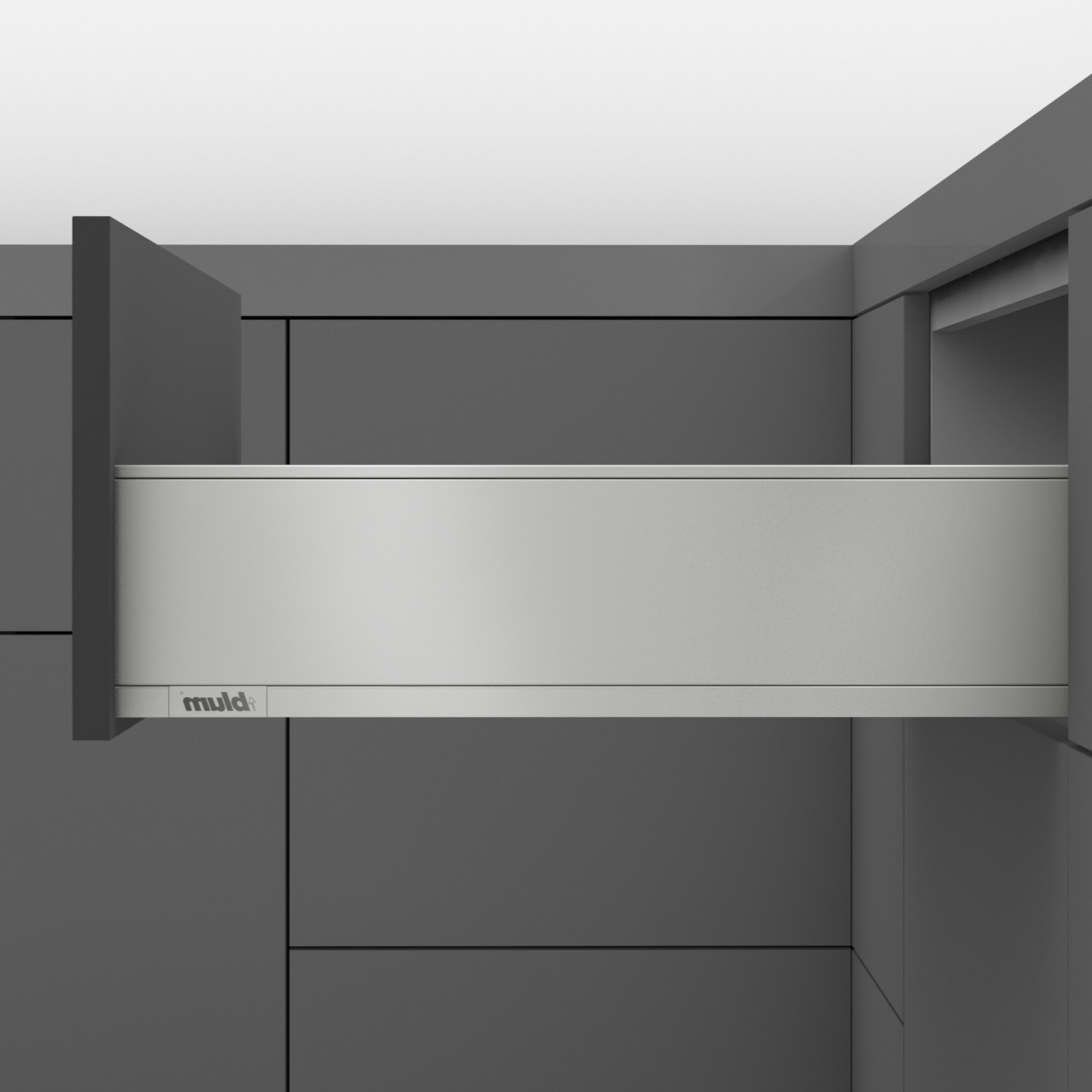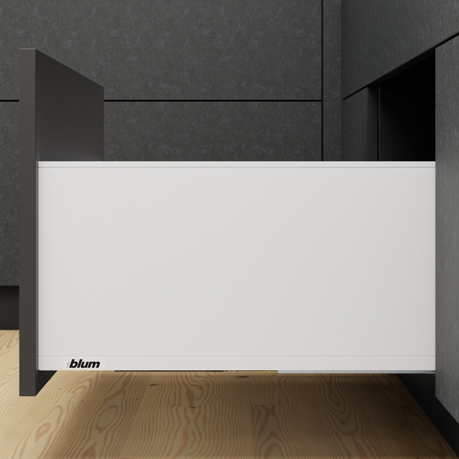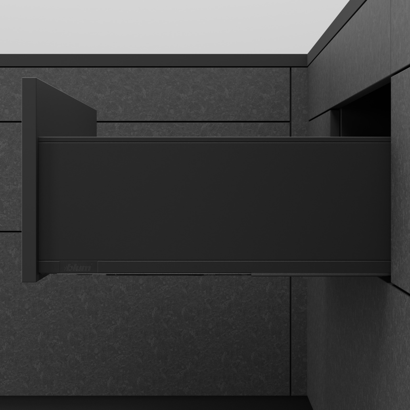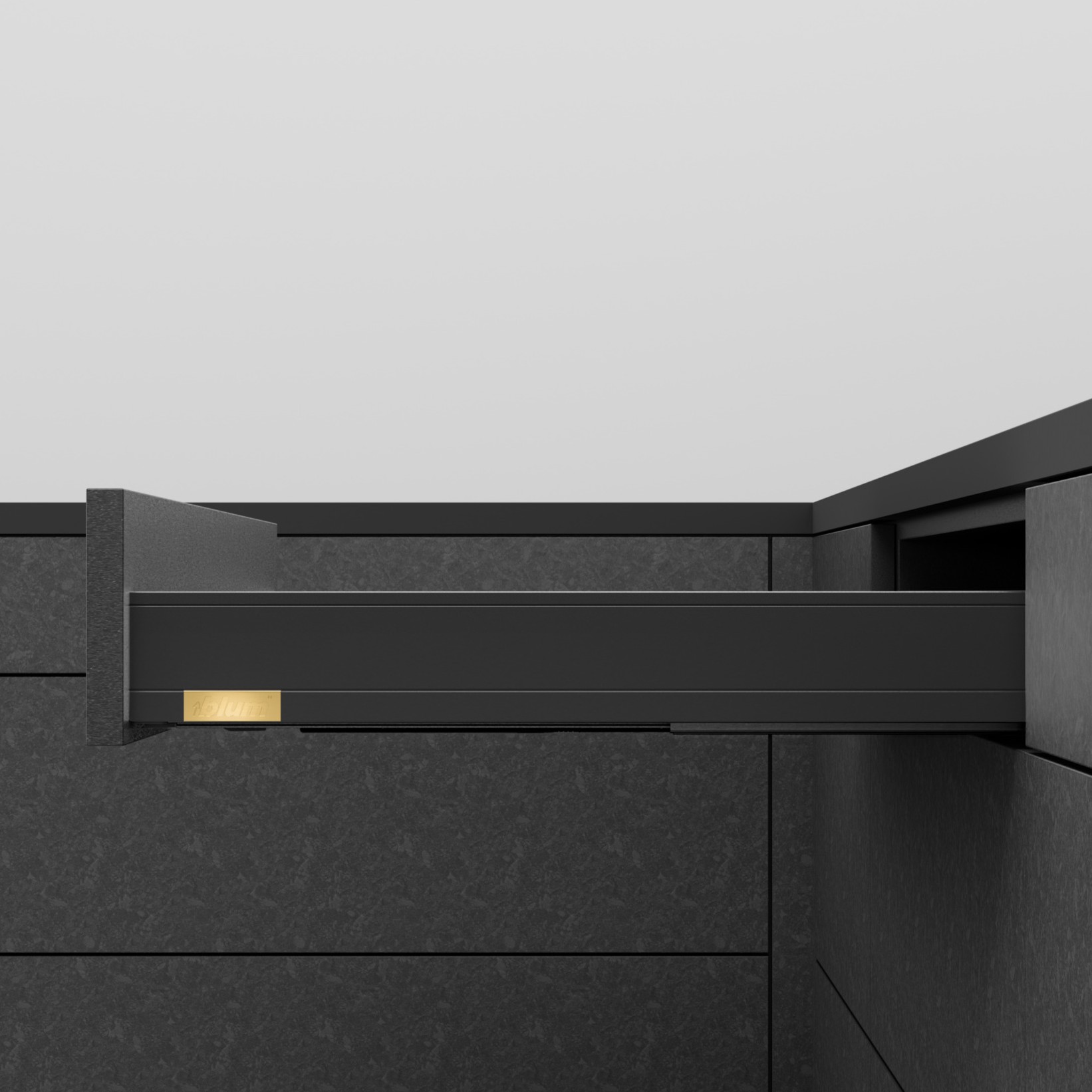 Skuffesystemet har fulluttrekk med integrert demping som gir myk og stille lykking, og kan kombineres med elektrisk åpning eller push-to-open mekanisme.