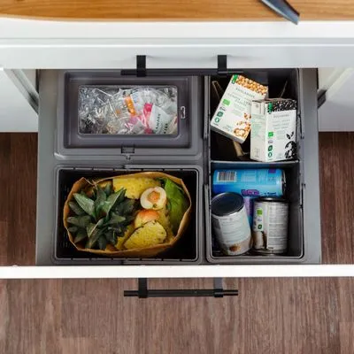 Se vårt utvalg av løsninger til avfallsortering. De passer til både skap og skuffer i ulike størrelser.